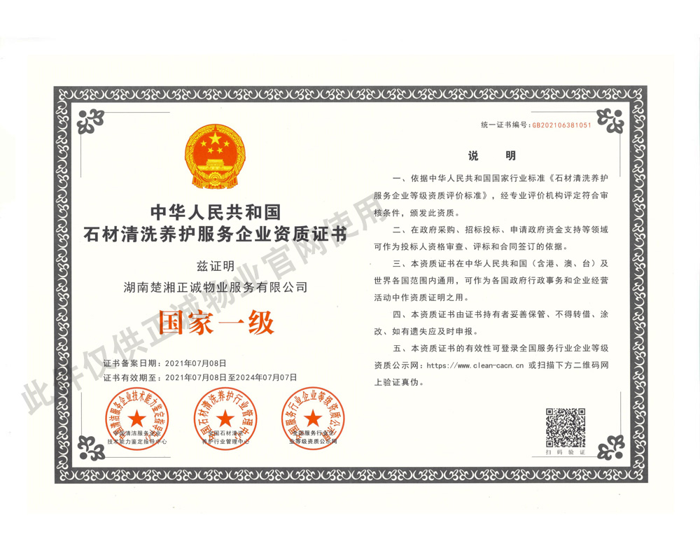 石材清洗養(yǎng)護服務(wù)企業(yè)資質(zhì)證書