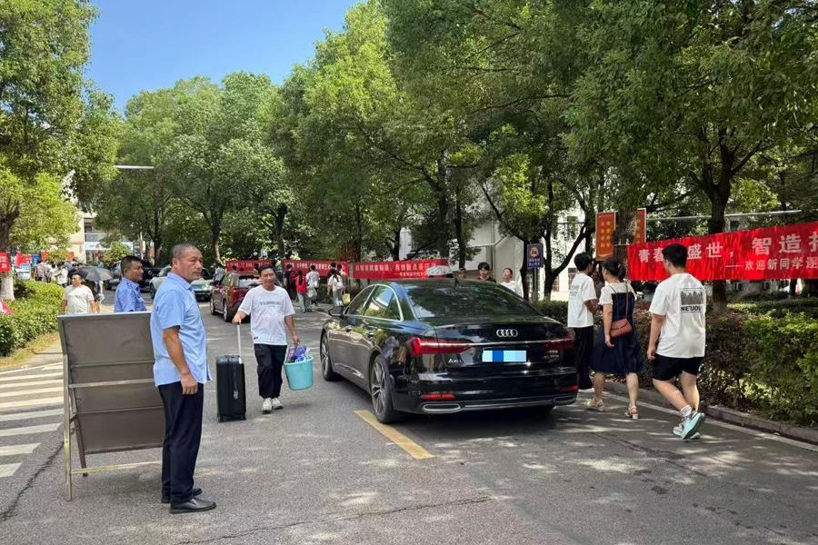 迎新當(dāng)日,烈日高懸,氣溫持續(xù)攀升至35℃,校園內(nèi)外車流量高達(dá)2000余臺次。面對雙重考驗,各崗位工作人員堅守一線、全力以赴。保潔團(tuán)隊以“繡花功夫”細(xì)致清掃每一處角落,確保校園潔凈如新;保安人員頂著驕陽,科學(xué)指揮交通,引導(dǎo)車輛有序進(jìn)出、規(guī)范停放;宿管員耐心細(xì)致地協(xié)助新生辦理入住手續(xù),熱情解答各種疑問;工程人員24小時待命,第一時間響應(yīng)并處理各類維修需求。各部門分工明確、協(xié)作緊密,用專業(yè)與熱忱迎接這場“開學(xué)大考”。
